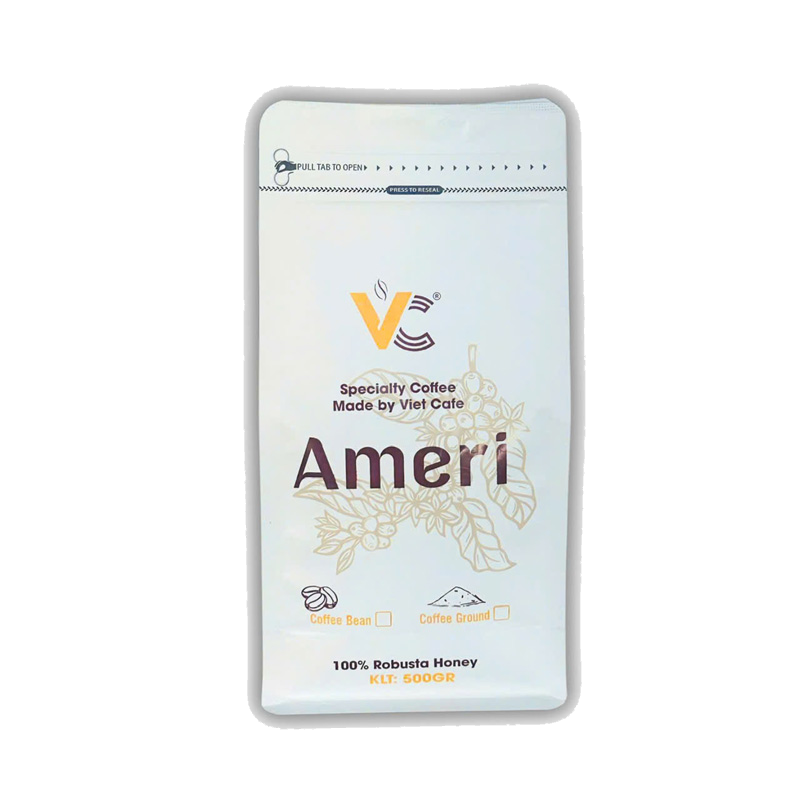 Vcafe Ameri mang đặc trưng thể chất dày, hương vị đậm, ít chua, hậu vị mạnh mẽ kéo dài. Nhờ phương pháp yếm khí, hạt Robusta được làm tròn vị hơn, giảm bớt gắt và giữ được độ cân bằng. Đây là lựa chọn lý tưởng cho những ai cần một ly cà phê mạnh mẽ, tỉnh táo và bùng nổ hương vị.
